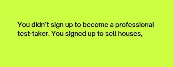 You didn’t sign up to become a professional test-taker. You signed up to sell houses, build wealth, and control your schedule.
