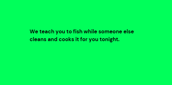 We don’t give you fish. We teach you to fish while someone else cleans and cooks it for you tonight.